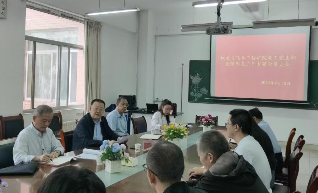 9月15日下午,机电与汽车工程学院教工党支部召开意识形态工作专题会,教工支部党员、校党委常委副校长王旭林、党委第三轮巡察组组长尹志宏参加了会议,研究生党员代表列席了会议。