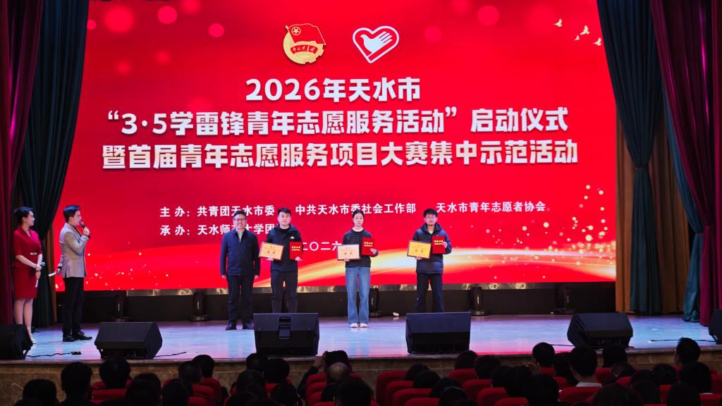 2026年3月5日,天水市“3·5学雷锋青年志愿服务活动”启动仪式暨首届青年志愿服务项目大赛集中示范活动在天水师范大学隆重举行。我院石旭刚、王文轩、孙诗涵、车玉芳、郑伟乐等学生组建的逐梦智能科技团队志愿服务项目“智护天水——社区消防安全智慧治理志愿服务项目”在此次比赛中脱颖而出,荣获大赛金奖。