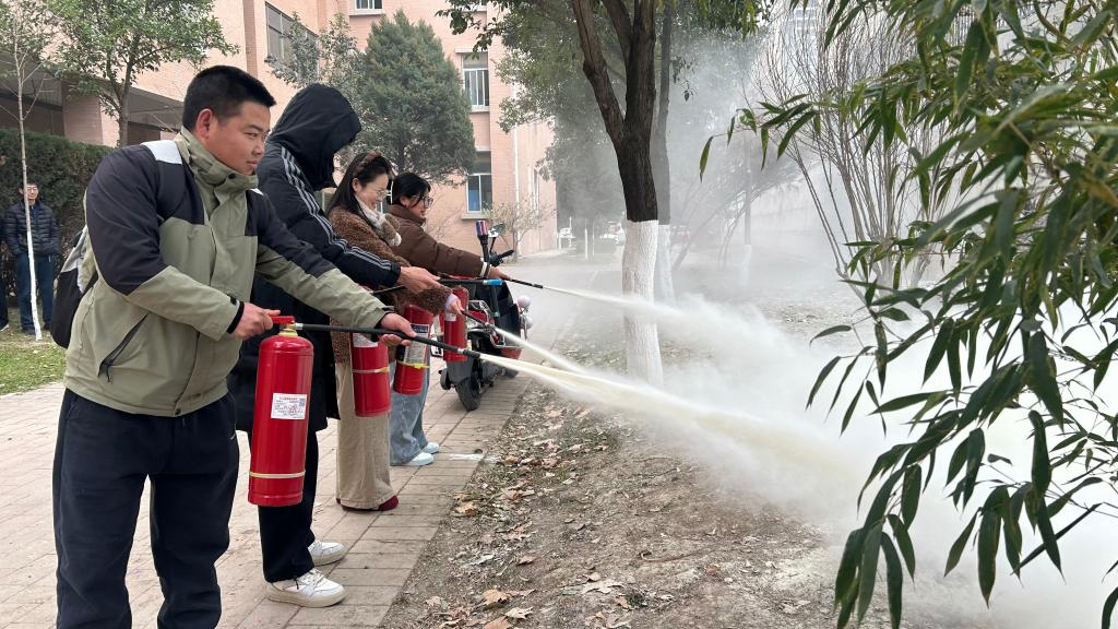 演练前,消防专员结合机电与汽车专业实验室常见风险场景,重点讲解了实验室火灾的成因、危害及预防要点,详细演示了干粉灭火器、消防水带等常用消防器材的正确使用方法,拆解了"提、拔、握、压"灭火器操作步骤和火灾初期扑救、疏散逃生的核心技巧,并提醒学生在实验室日常学习工作中需熟悉消防通道、安全出口位置及应急报警流程。